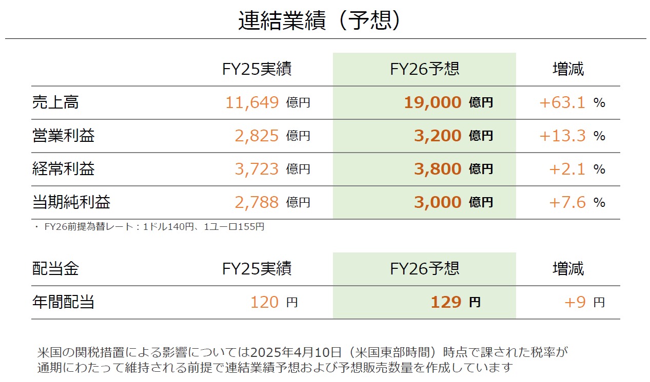 業績予想は4/10時点のトランプ関税(中国以外は10%)が維持される前提での物だとか。
