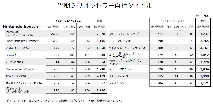 [任天堂: 2024年3⽉期第1四半期決算説明資料 / 同第2四半期 / 同第3四半期 / 同通期 決算説明資料](pdf)