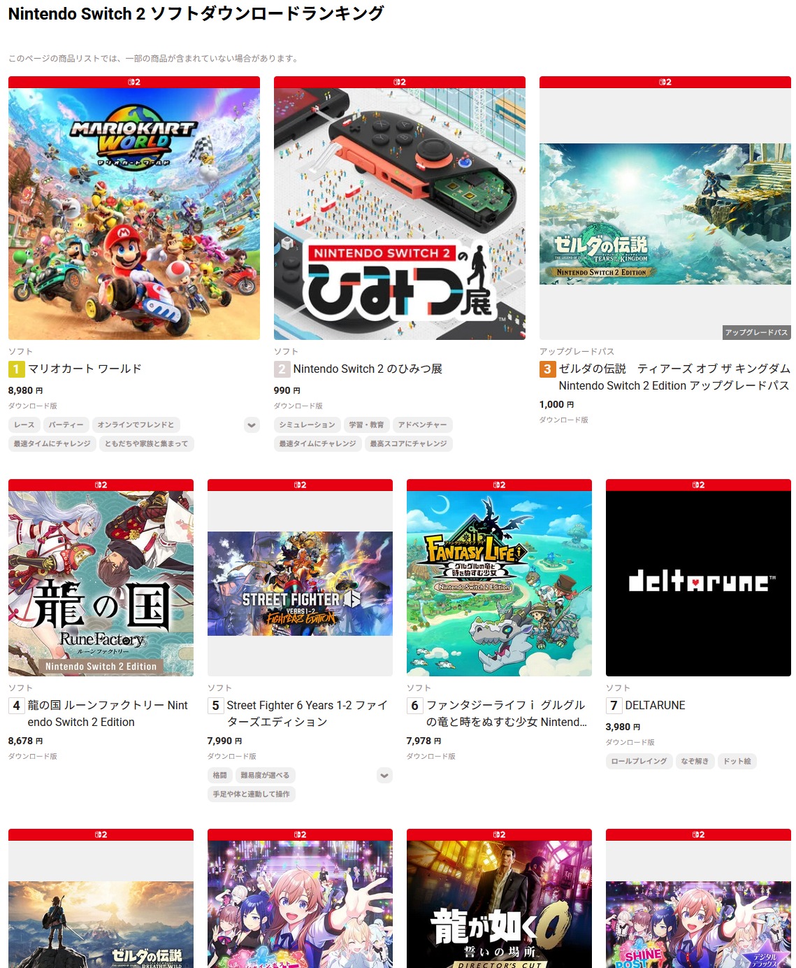 [My Nintendo Store: Nintendo Switch 2 ソフトダウンロードランキング]