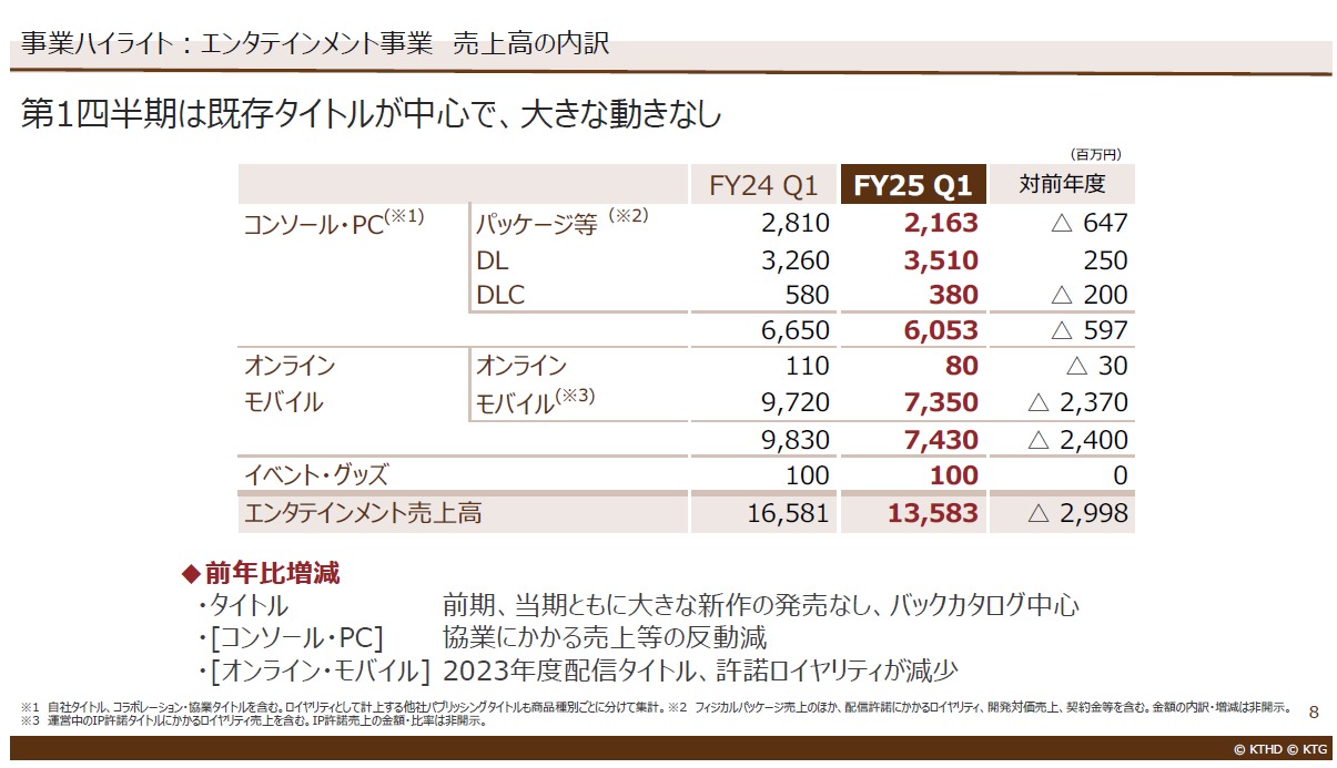 主力事業であるエンタテインメント事業(ほぼゲーム事業)については、