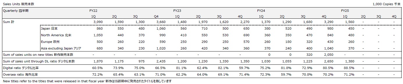 デジタル売上高比率が逆に64.3%と低くなっているのは(※デジタル版の方がフィジカル版よりパブリッシャの取り分が大きくなる為、普通は本数比率より売上高比率の方が高くなる)受託分やライセンス関連がフィジカル側に分類されているという事になっているのですが…