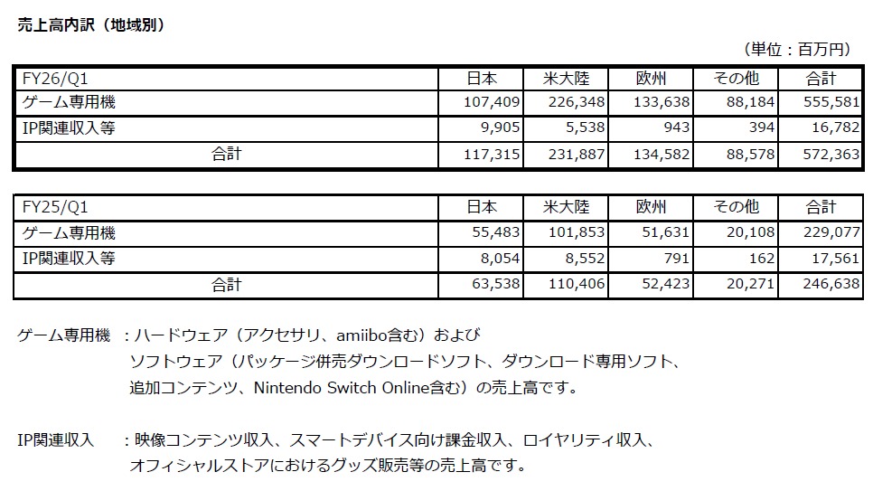 / [決算]任天堂、2026年3月期第1四半期決算はNintendo Switch2発売に伴い大幅増収も営業利益は伸びず、営業利益率が大幅に悪化]