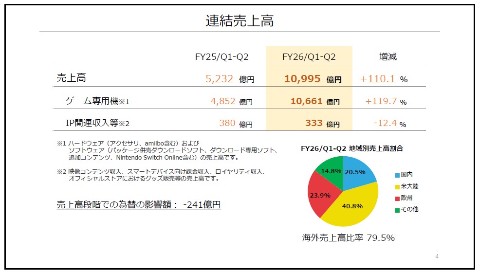 [任天堂: 2026年3月期第2四半期(中間期)決算短信〔日本基準〕(連結) / 決算説明資料 / 通期業績予想の修正に関するお知らせ](pdf)