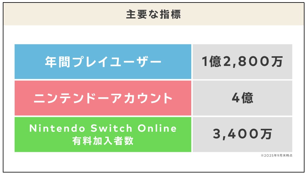 タイトルでも書いた「年間プレイユーザー」は2025年9月末時点においても1.28億のまま。