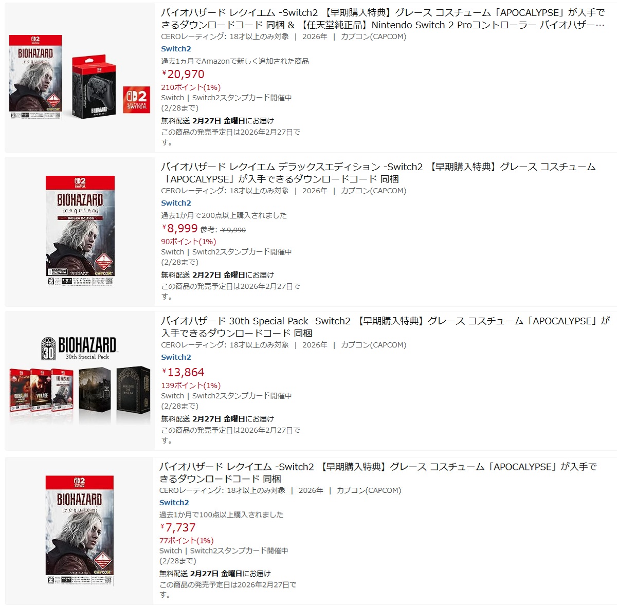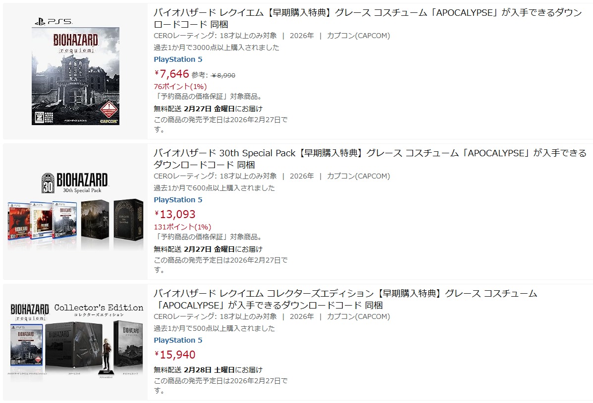 [Amazon: 「バイオハザード レクイエム」の検索結果]