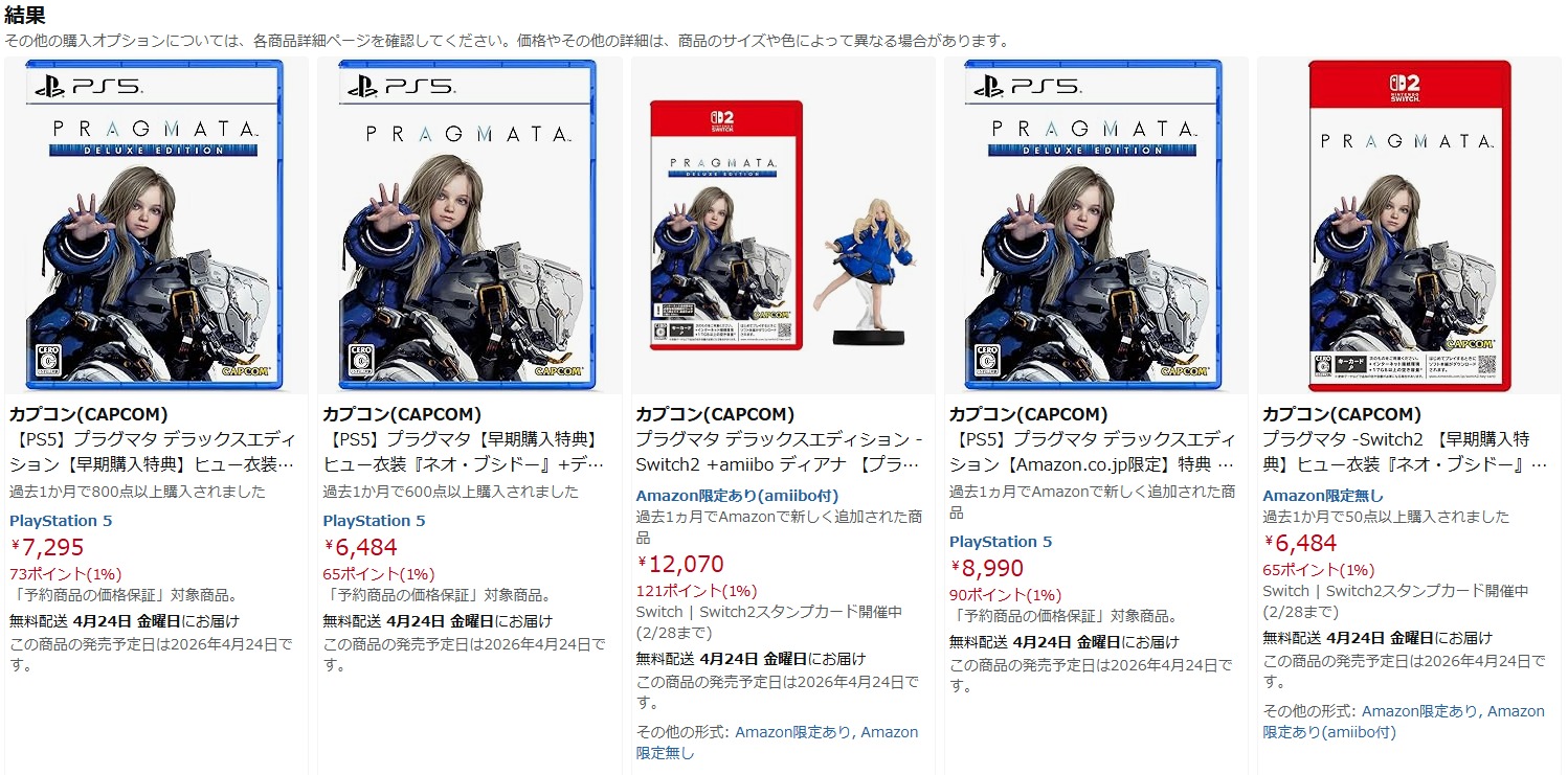 また何ぞ都合が悪い事でもあったのか、バイオ9に続いてPS5版には機種とエディション切り替えボタンがAmazonで出てこない「プラグマタ」なのですが。
