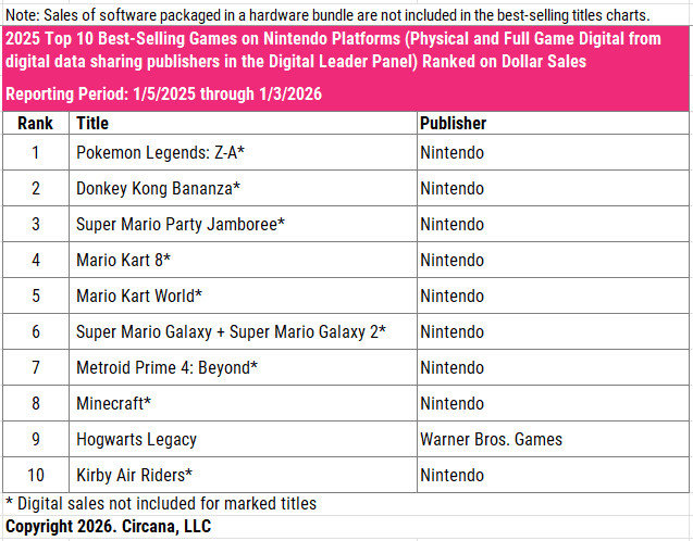 他にランクインしたタイトルは「ELDEN RING NIGHTREIGN」と「ポケモンレジェンズZ-A」。