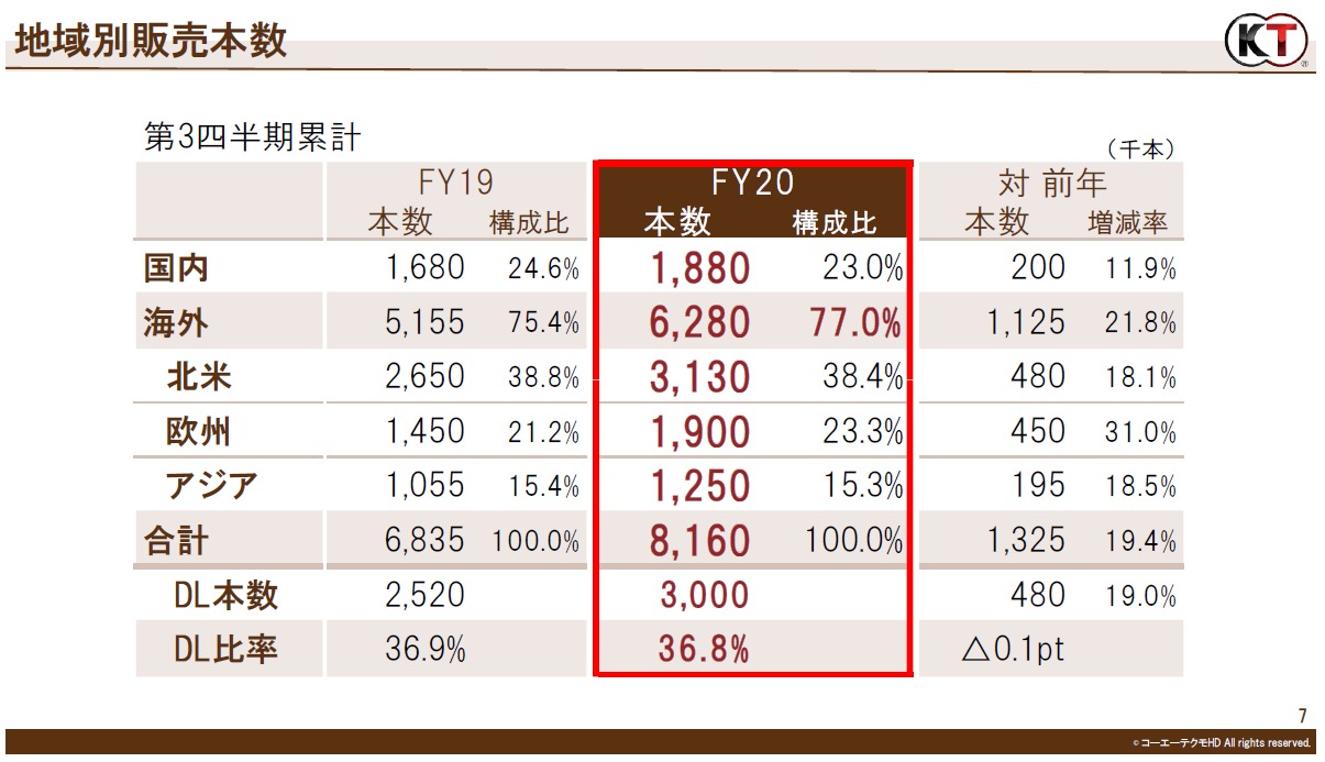 同期間の全体における販売(出荷)本数は第3四半期累計期間の時点で全世界816万本、うち国内分が188万本。