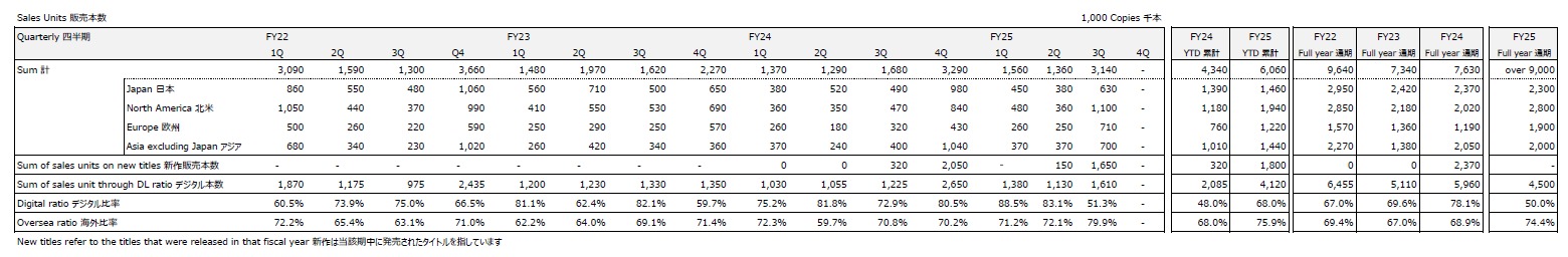 で、販売本数は凄い見づらくなっていますが3四半期累計で全世界606万本、うち国内分が146万本。