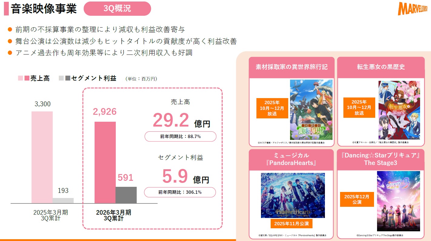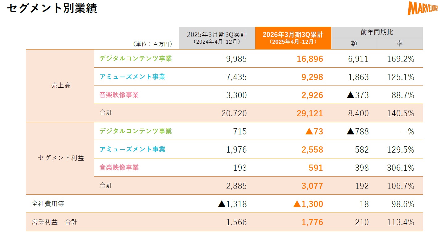 [マーベラス: 2026年3月期第3四半期決算短信〔日本基準〕(連結) / 決算説明資料](pdf)