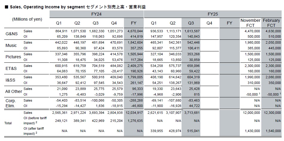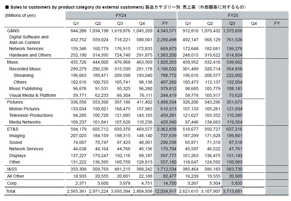 [ソニーグループ: 2026年3月期 第3四半期決算短信〔IFRS〕(連結) / 決算説明会資料 / 補足資料](pdf)