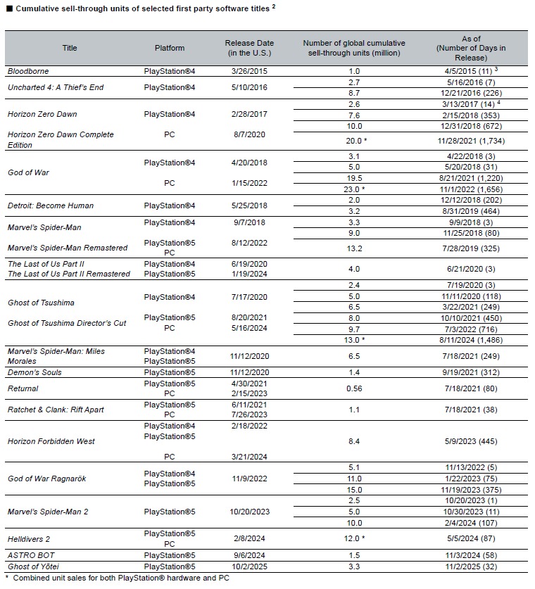 こちらにも有る通り「Ghost of Tshushima」が3日で240万本、118日で500万本を突破したと発表していたのに対し、「Ghost of Yōtei」は32日(昨年11/2時点)で330万本と年末商戦期に突入する前に前作と同等のペースで売れている事は分かっていた訳ですしね。