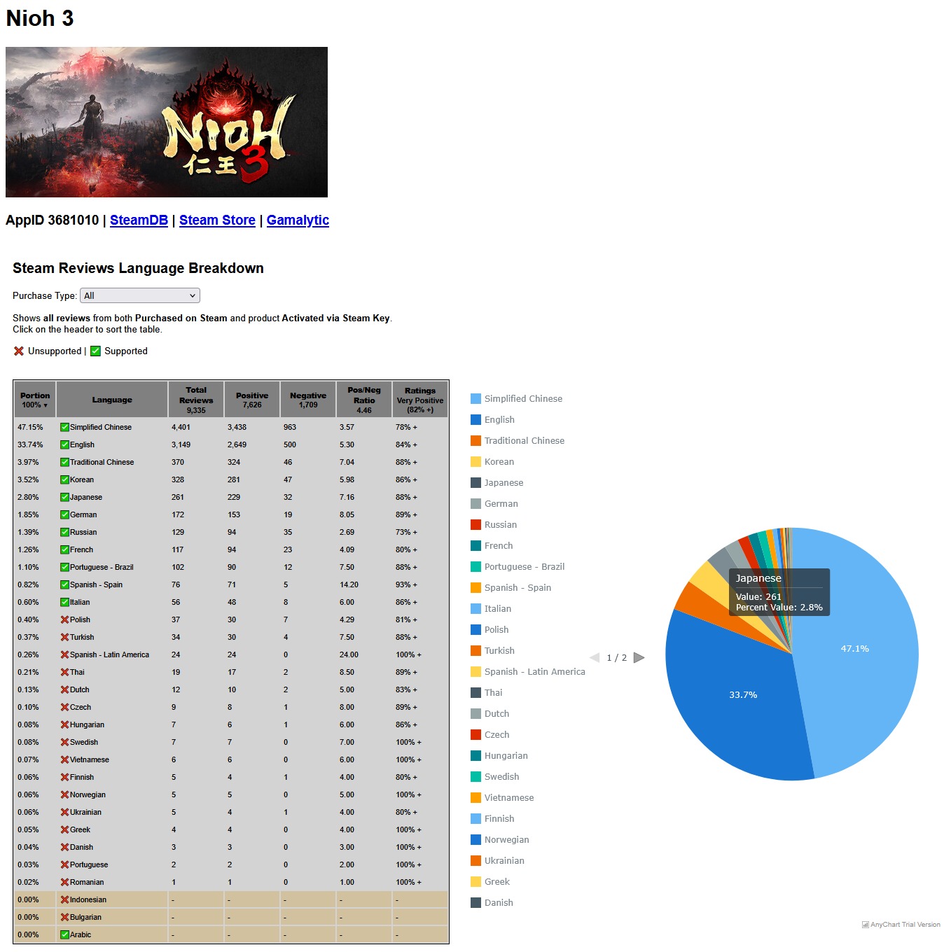 [Steam Scout: Nioh 3 Steam Reviews Language Breakdown]