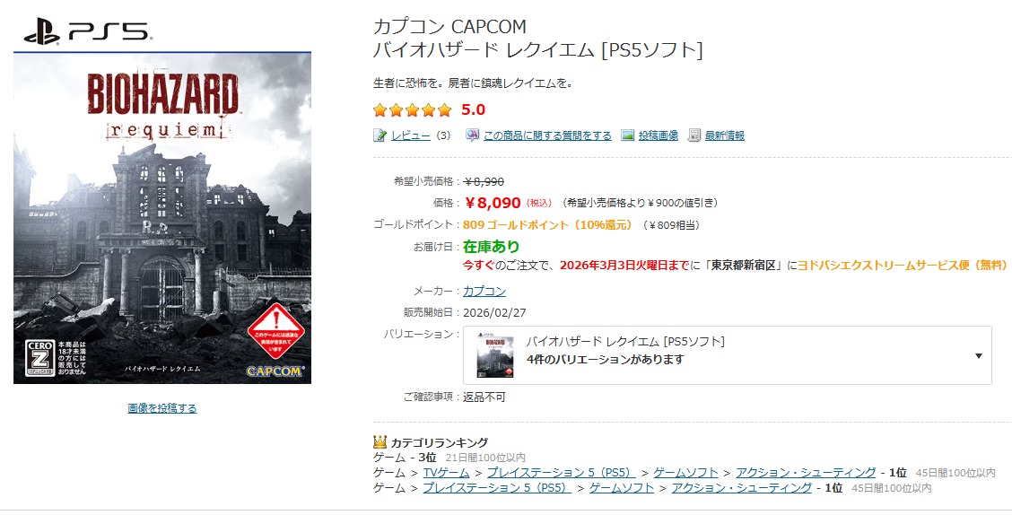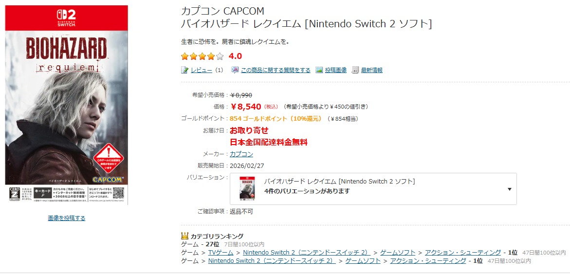 Switch2版バイオレクイエム、ヨドバシ全店で売り切れwwww